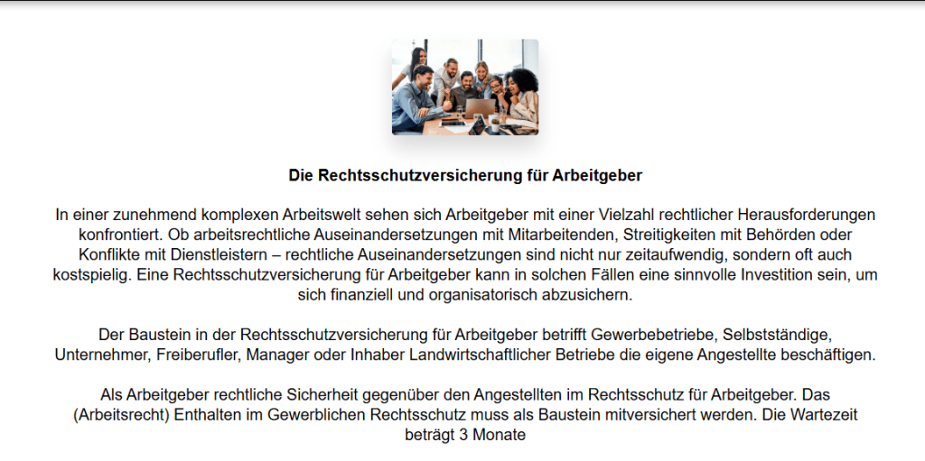 Die Versicherung unterstützt sowohl präventiv als auch im Ernstfall, um Konflikte effizient und rechtssicher zu lösen.